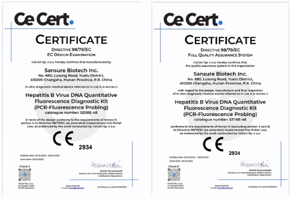 5月20日,米兰电竞生物自主研发的乙型肝炎病毒核酸检测试剂盒(PCR-荧光法)、丙型肝炎病毒核酸检测试剂盒(PCR-荧光法)和人类免疫缺陷病毒1型核酸测定试剂盒(PCR-荧光探针法)成功通过欧盟公告机构认证(CE IVDD List A),成为中国第一家核酸检测试剂荣获欧盟CE最高认证的企业。