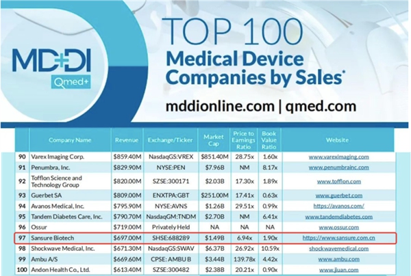 近日,医疗器械行业权威网站Medical Device+Diagnostic Industry(MD+DI)发布了2023年全球医疗器械企业TOP100榜单。米兰电竞生物连续两年上榜全球百强,也是此次榜单唯二主营业务是体外诊断的中国企业。